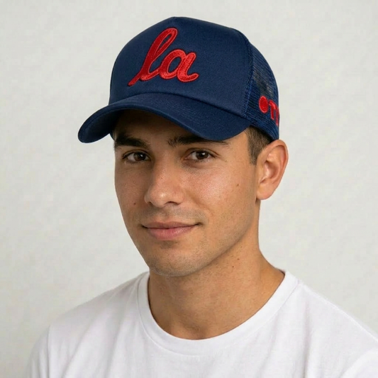 ONLY THE LONELY SCRIPT LA CHAINSTITCH FOAM TRUCKER (NAVY/RED)