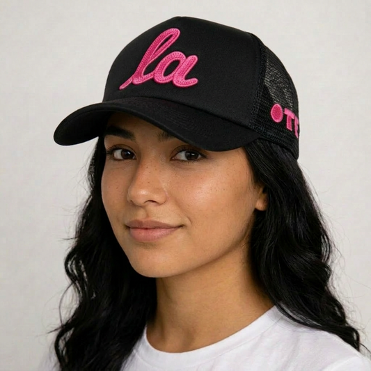 ONLY THE LONELY SCRIPT LA CHAINSTITCH FOAM TRUCKER (BLACK/BUBBLE GUM)