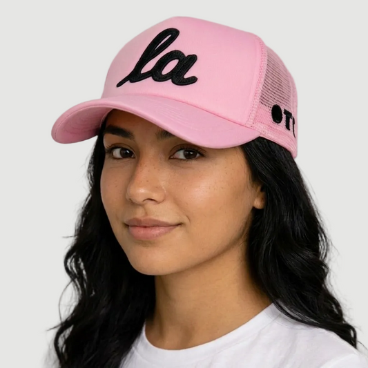 PINK ONLY THE LONELY SCRIPT LA CHAINSTITCH FOAM TRUCKER PINK